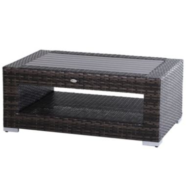 Outsunny Rattan Wicker Coffee Side Table With Height Adjustable Feet 2 Tier Storage Shelf Deluxe Slatted Top For Outdoor Patio Garden Backyard Mixed Grey Bed Bath Beyond